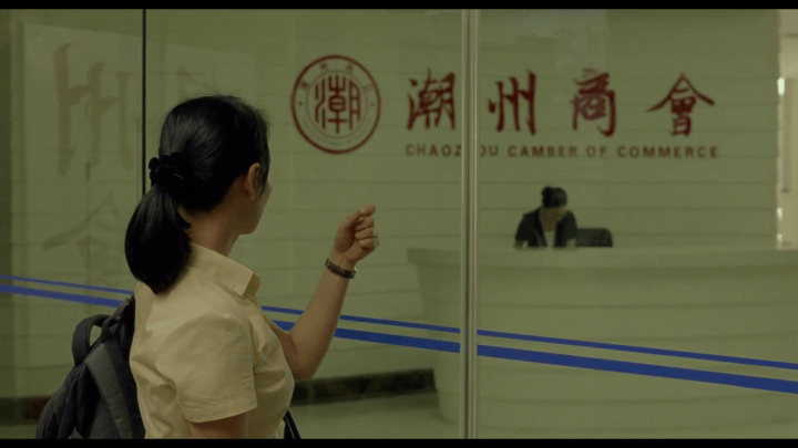 La escena de acción regocija porque prueba el reconocimiento de Jia al cine de género como una de las formas felices del cine, como también reconoce en aquella otra donde un grupo de mafiosos mira una película de triadas hongkonesa, invalidando de paso el moralismo progresista de críticos y cineastas que lo impugnan. La escena de acción de Jia convierte a la protagonista en heroína al demorar el último plano en que ella sostiene el arma con la que ha disparado al aire en su mano derecha, tan equívocamente recordada por su amante en el ingrato y tardío reencuentro. Es otro, sin embargo, el objeto que la define y que portará como emblema contra el mundo, al igual que ese antepasado histórico y mítico portaba su alabarda. Cuando ella llega, una vez cumplida la condena, al edificio donde trabaja su antigua pareja se interpone entre ambos una secretaria correcta hasta la violencia -así como modernos dispositivos de seguridad, parte de la escenografía y de la arquitectura contemporáneas deshumanizadas hasta la ciencia ficción, que harán que un personaje se pregunte “¿Dónde estamos?” cuando retorne a su cambiado lugar de origen- y una puerta corrediza electrónica de blindex cuyo impertérrito mecanismo será obstaculizado únicamente por la botellita de plástico con agua mineral que ella pone como una cuña entre las dos hojas para evitar su transparente pero violenta exclusión. Del otro lado se lee “Cámara de comercio”.