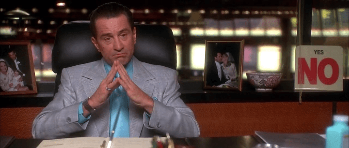 En uno de sus parlamentos en off, bien al comienzo de Casino, el gángster zarpado Nicky Santoro (Joe Pesci) dice: “Esa fue la última vez que unos tipos de la calle como nosotros llegaron a tener algo tan valioso”. Habla de un casino y de Las Vegas en su totalidad. Es decir, del Paraíso, que es como llama al tiempo en el que tanto él como su amigo Sam “Ace” Rothstein (Robert De Niro) pensaron que tenían algo más que la concesión de un poder con fecha de vencimiento. La caída es el motivo argumental más persistente en la filmografía de Scorsese. Puede seguir al ascenso (Buenos muchachos, Toro Salvaje, El lobo de Wall Street), empezar a horadar pronto lo que parece firme (Casino) o haber concluido ya, para que el ciclo empiece de nuevo (El color del dinero). Pero es difícil que no deje su marca. La caída de Ace, Nicky y la mafia old style -sustituida en los 80 por la especulación bursátil como banca en las sombras y presentada por Scorsese como un grupo de viejos brutos que parecen posar anticipadamente para el álbum fotográfico de su propia historia– permite hablar de Casino como de un réquiem por un modo específico del crimen organizado. Como si dijéramos: Casino trata de la última vez en la gloria de los que se formaron en la mafia del barrio y treparon hasta un mundo de negocios multimillonarios que dejaba en evidencia los modales aprendidos para sobrevivir y destacarse en la calle, el lugar donde se pagan los pecados, según decía Harvey Keitel en Calles salvajes.