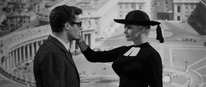 Sin embargo, sentado en una sala chiquita pero casi llena, rodeado por espectadores de tercera edad pero no únicamente, tuve la sensación de que los que nos habíamos acercado hasta esa sala un viernes por la noche no sabíamos del todo qué hacer con esta película. Primero: es muy larga, prácticamente tres horas. No estoy seguro de que todos los que quisieron ver La dolce vita estuvieran al tanto de su extensa duración, incluso si no era la primera vez que la veían (uno olvida cosas tanto más importantes que esa). Fueron varios los que se levantaron y se fueron pasadas las dos horas de metraje, que es (de paso) cuando la cosa empieza a ponerse más cuesta arriba. Pero no se trata exclusivamente de la acumulación de minutos, después de todo hoy estamos mucho más acostumbrados que antes a bodoques que cuanto más importantes quieren parecer, más duran (y, ay, su contrapartida: la virtual desaparición de la hermosa película de 70 minutos). El tema con La dolce vita es que no solo dura tres horas, sino que dura tres horas de un deambular sin argumento, pasando de una angustia a la siguiente, jugando al juego de que el espectador la pase mal. No todos (y con razón) están dispuestos a eso.