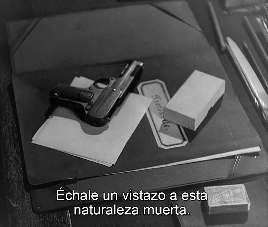“Echale una mirada a esta naturaleza muerta”, le dice el comisario Lohmann a un delincuente en El testamento del Dr. Mabuse (1933), mientras le señala un revolver y una caja de balas ubicados sobre una carpeta negra. Es un cuadro perfecto, lleno de juegos de líneas. Lo notable del diálogo es que no vale solo para ese plano sino que da cuenta de un procedimiento que Lang utiliza a lo largo de toda la película: