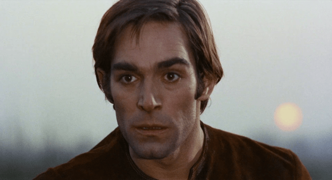 Crece desde el pie: piernas de mujer corren por el cinemascope de su casa en cuanto se escucha el ruido de la llave de la puerta. Está descalza, pero lleva puesta medias amarillas. Corre al encuentro de un hombre que es un par de piernas enfundadas en pantalones de vestir y dos zapatos negros sobre los que se monta. ¿Es una hija subida a los pies de su padre, como los de la nena que baila el vals sobre los de El padrino? No importan la cara, los ojos, las tetas ni el culo de Agostina Belli. Tampoco la comisura izquierda, los bigotes, la frente ni la mirada de Oliver Reed. Sólo esa espera y recepción parcial de una presencia rotunda y un deseo sin edad.