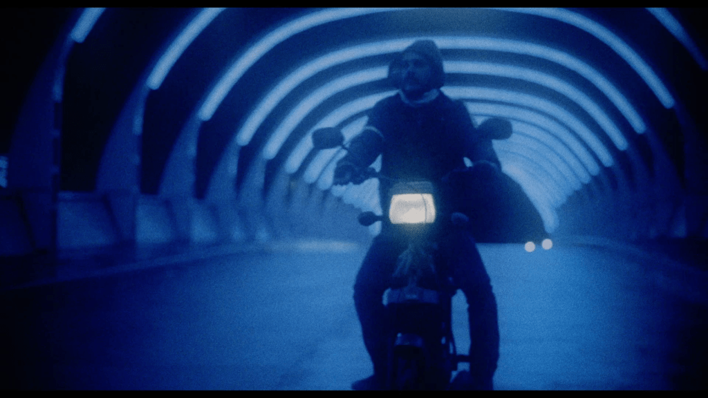 La ciudad es también el repertorio de canciones. El criterio parece haber sido: que suenen como si fueran el corazón de los personajes. Y vaya si suenan así. Las más importantes son tres: “Yo renaceré” de Eduardo Gelfo y su feliz cuarteto Leo y dos de Chébere: “Déjame soñar” y “Un buen perdedor”. (Hay una cuarta -“Ha vuelto a robar” de Trulalá- que se escucha entremezclada con otros sonidos, como si no quisiera dejar oír con claridad su letra, que habla de un robo, justo cuando la voz en off habla de un robo). Las canciones cumplen funciones varias, todas fundamentales. Para empezar, el ritmo depende en parte de ellas, ya que la extensión de sus versos o estrofas determina en ocasiones el momento del corte, y por lo tanto la duración del plano (véase el paso de la escalera al metegol, por ejemplo). Después, y de manera más general, cumplen un papel decisivo en la textura sonora de la película. Así suena (¿esto es?) Mi última aventura: como cuarteto sentimental. O sino: como bolero cordobés. Porque claro, hay mucho amor entre estos pibes. La tercera función de las canciones es darle a este amor palabras cruzadas. Al comienzo, el Pelu pone en el celular “Déjame soñar”, que dice “Vete ahora ya / vete que este amor que tengo / tú no lo mereces”, y es como si la canción conociera o solicitara la traición. Lo mismo sucede más adelante, en el boliche al que van a comer algo después del robo, con “Un buen perdedor”, que empieza así: “Sé que piensas marcharte / ya lo sé / y no te detendré”. La secuencia es memorable. Primero, un plano detalle del bolso y un extraño plano de establecimiento, con la mitad de la cara del Pelu y los carteles detrás, que nos dicen que estamos en un lugar para comer lomitos. Después, desde atrás del hombro del Pelu, en la clásica posición que adopta la cámara en las conversaciones, y como anunciando contraplanos que no llegan nunca, la narración se queda con los gestos que se multiplican en la cara y el cuerpo del amigo. Un plano subjetivo de las llaves de la moto divide en dos el tiempo que la película nos da para observarlos. Ya está todo planteado. Falta la oportunidad, y el último impulso. Entonces, después de tirarse un pedo que los dos celebran con risas, como corresponde, el Pelu se va al baño. Solo, el amigo apoya la cabeza en el brazo, medio tirado sobre la mesa, y de pronto, algo sucede. La canción -que no dejó de sonar nunca- continúa, ahora independizada del celular, en el plano más jugado y más notable de la película, que muestra el modo en que el amigo se representa mentalmente al Pelu: un héroe que emerge con su motito de un túnel que es como la boca de un volcán azul. Habría que seleccionar fotogramas de este plano y hacerlos póster. O memes (quedate con quien te imagine como el amigo al Pelu). O stencyls. Si el grafiti de La ley de la calle dice “The Motorcycle Boy regins”, el de Mi última aventura podría decir: “El Pelu manda”. Sobre este plano de vocación mítica escuchamos otra estrofa de “Déjame soñar”, con los instrumentos y la voz bien definidos, con fuente en off, no en in; todo un salto respecto del teléfono. Los primeros versos dicen: “No tienes por qué disimular / esas lágrimas están de más / si tienes que irte / vete ya”. En un momento brillante, el Pelu detiene la moto y apoya el pie en el piso, sin ningún motivo ligado al tráfico, como volviéndose monumento. Después sigue. El corte que nos devuelve al boliche es otro ejemplo de cómo las canciones afectan el ritmo de la película, en este caso por medio de un encabalgamiento: un verso empieza en la ensoñación (“Yo no te guardaré”) y termina en el negocio de lomitos (“rencor”), otra vez saliendo desde el celular, justo cuando el traidor abre los ojos y establece así, retrospectivamente, su vínculo con la imagen azul. Es como si el Pelu hablara por su playlist, y como si su amigo escuchara en ella un mensaje que le está destinado. No soy traidor, soy hermeneuta, podría decir. Y algo de razón tendría. Apenas Chébere dice: “Yo no te guardaré rencor” la decisión termina de formarse: el flaco mira hacia el baño, ve que tiene tiempo, agarra el bolso y las llaves, se demora un segundo para dejar el sobre con los treinta mil pesos y se las toma. La voz en off no vuelve. Hay que esperar a la canción de los créditos, que puede considerarse la respuesta a la playlist del Pelu, para que el amigo encuentre otra vez una expresión. De las cuatro canciones, “Yo renaceré” es la que tiene un ritmo más festivo, por lo que la película nos deja con cierta euforia manchada (amor y traición, fuga y tanque vacío o fallo mecánico, baile y separación). Dice una estrofa: “Yo renaceré / amigo, tú estarás conmigo / Y sé que encontraré / toda la fuerza que yo ansío”. Y otra, posterior: “Yo renaceré / sin mis pasadas frustraciones / y, amigo mío, intentaré / hacer verdad mis ilusiones”. De manera que entre las canciones hay un diálogo que pone la traición en otro nivel, que no guarda rastros de desprecio, envidia o alguna otra pasión triste. Al fin de cuentas, se trata de la traición del discípulo: el que hace siempre la segunda y ve la chance de vivir su propia historia después de contar la del maestro.