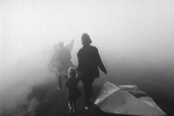 La imagen renuncia a representar para sugerir existencia mediante indicios: el viento tratándose de filtrar al interior de una casa de campo, un cuervo que grazna, la sombra de un árbol y el vértice de un quincho -maquetas de montañas- como restos vitales no tanto geográficamente lejanos en la penumbra sino pretéritos.