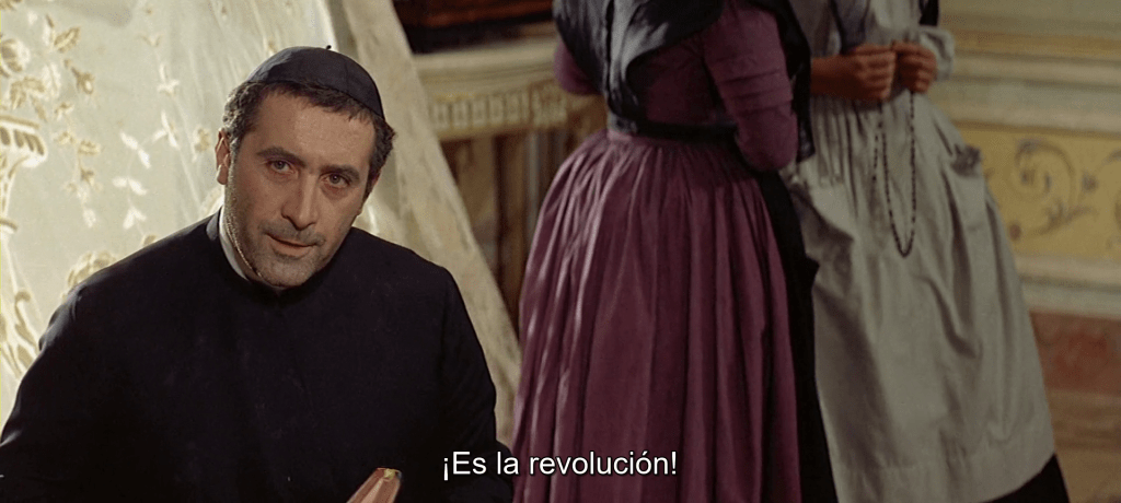 El director de Ossessione era en aquel momento la única opción concretamente disponible para una visión marxista de la historia y de la sociedad, por lo menos entre los nombres destacados de nuestra cinematografía. En cuanto a los otros dos padres del neorrealismo, De Sica, ya lejos del nivel de Ladrones de bicicletas, había intentado una torpe aproximación a Sartre con I sequestrati di Altona, y Rossellini había tocado el fondo recientemente con Anima nera (un par de años antes también él había dirigido una película de tema risorgimentale, Viva l’Italia, con la colaboración bipartisana de Trombadori y Alianello, y con un resultado en absoluto comparable con El gatopardo). En cuando a Federico Fellini, el gran rival amigo de los jesuitas, después de La dolce vita continuaba ganando terreno con 8 ½. Acusar a Visconti de falta de compromiso, alejarlo de la lucha política concreta, habría sido un harakiri cultural.