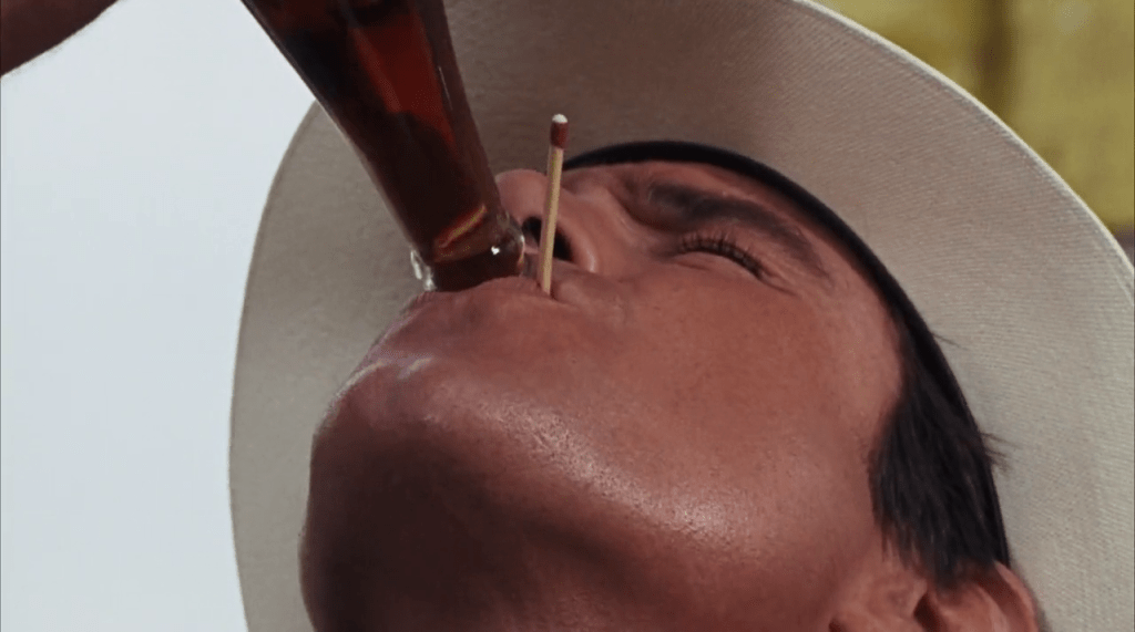 Alligator está llena de humor y de comentarios políticos. Respecto de lo primero, sobresalen la entrevista al cazador que interpreta Henry Silva, y que imita los sonidos del cocodrilo que pide ayuda a la madre y del cocodrilo en celo; todas las alusiones a la incipiente calvicie del policía (por cierto, un brillante Robert Forster) y diálogos perfectos como este entre la doctora y el policía, después de su primera noche juntos: “-¿Para qué me necesitás? – ¿Para qué va a ser? Sos la mejor herpetóloga del país, tenés una mente maravillosa, un doctorado y hermosas tetas”. Las alusiones políticas, por su parte, están distribuidas en distintos niveles. En 1968, la radio habla de la convención demócrata. En 1980, después de que sale a la luz lo que pasa, un tipo que quiere vender una cría de cocodrilo así como otros venden muñequitos a modo de souvenir se queja cuando el policía lo detiene porque lo considera una falta contra la libertad de empresa (sale de escena gritándole “comunista”). Pero hay dos cosas especialmente notables. Primero, la representación de la ciudad, que aprovecha el movimiento del monstruo para mostrar las casas y los barrios de la clase media, de los pobres y la mansión en la que al final el cocodrilo hace la incursión más destructiva, y que recuerda muchas otras escenas (de Big Bad Mamma, de Crazy Mamma, de Black Caesar, de White Line Fever), tan propias del exploit de los 70, en las que el espacio de los ricos recibe el ataque de una fuerza exterior. En este caso, natural-social (el cocodrilo está ahí por la intervención del espectáculo y tiene el tamaño que tiene por el contacto con ciertas hormonas de crecimiento). En todos los otros, social-social, ya que los que toman por asalto las casas de los ricos son trabajadores, negros o pobres vueltos ladrones. La otra cosa notable es la distribución de roles, que establece como villano al dispositivo formado por el dueño de un laboratorio, el laboratorio mismo y los que trabajan para él: un científico y un político puestos al servicio de los intereses del capital y no del pueblo.