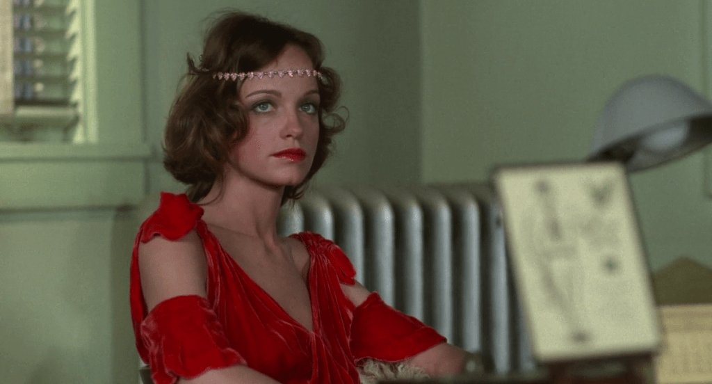 The Lady in Red es uno de los últimos exploits sobre los años 30 que siguieron al éxito de Bonnie and Clyde (1967). Es pariente, por lo tanto, de Bloody Mamma (1970), que repuso la versión sucia del gangsterismo, y de sus secuaces Boxcar Bertha (1972) y Big Bad Mamma (1974), todas nacidas del genio B de Roger Corman, que dirigió la primera y les dejó las otras dos a Scorsese y a Steve Carver, para que practicaran. Los títulos señalan el protagonismo de las mujeres, por medio de una función (madre), de un nombre propio (Bertha) o de una combinación de edad y aspecto (joven de ropa roja). De hecho, y a contramano de la seriedad prefabricada, es posible considerar algunas de estas películas como cine de explotación feminista no doctrinario, al igual que el de Russ Meyer y el de títulos como Caged Heat (1974) de Jonathan Demme, que convierte un circo de exhibición de tetas en una aventura de mujeres fuertes (en tetas), y se presenta de entrada como “A Renegades Women Co. Production”.