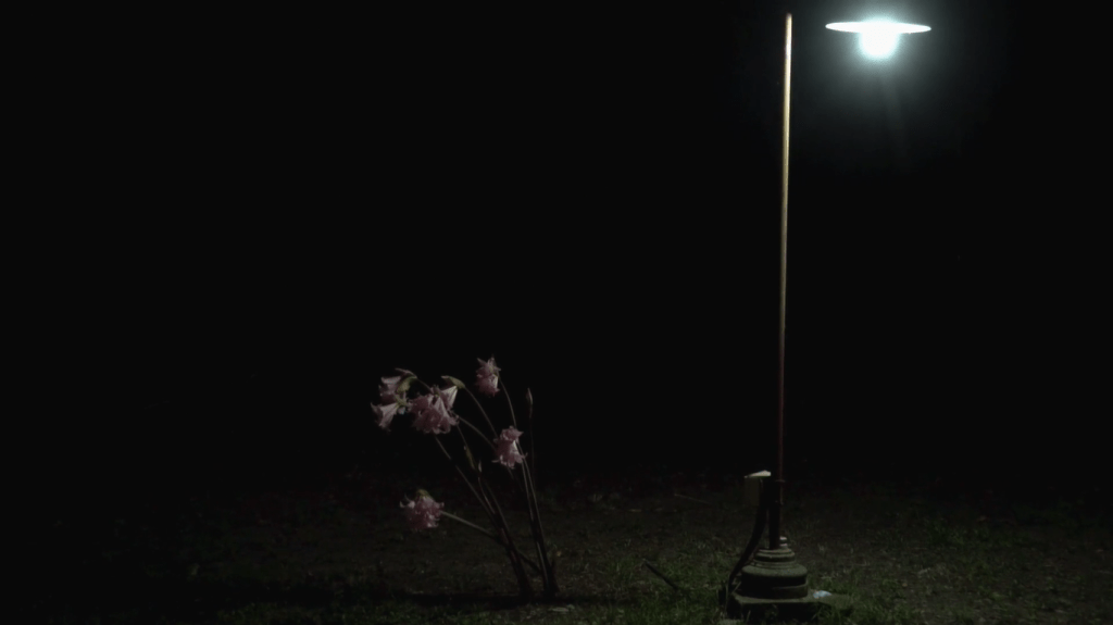 La comprensión mística de la naturaleza de Juanele, su puesta en continuidad de dimensiones que nuestra cultura entiende como separadas, contagia a la película. Si hay un pensamiento del árbol, si ir al río es tal vez volverse río, si la conciliación con la naturaleza es algo a lo que el poema puede aspirar, o al menos dar anuncio, entonces tal vez también el cine pueda probar un camino en esa dirección. Para que sea posible, es necesaria una cierta humildad en el vivir. Una casa, un ventilador, una lámpara, un par de dispositivos tecnológicos sometidos a un ritmo que no es el que promueven y un acuerdo por el cual el árbol se hace libro y el libro conduce al árbol, a su gloria olvidada, a su pensamiento, en este caso por medio de una cámara. En esto, Juanele encuentra un aliado cinematográfico en Sokurov, de cuyas elegías El mismo río guarda algunas huellas. Por ejemplo, en la atención por los sonidos austeros y a veces espectrales que produce la presencia humana humilde: el crujir de la madera, el crepitar del fuego, las palabras en volumen bajo. Y también en el privilegio de lo pequeño por sobre lo grande. Un plano muestra un escritorio, unas manos y un libro con esta frase subrayada: “Todo el mundo sabe que el junco, cuanto más se corta, más crece”. Es parte de Sudeste, de Haroldo Conti. Y es el principio poético de El mismo río. Poco, y entonces mucho. Esta convicción es una forma. El río y el bosque son exuberantes pero están filmados siempre desde lo que puede hacer una persona con una cámara y un trípode. Ninguna grúa, ningún drone. Una puesta en escena-junco. Pero claro, esta conciliación, cuyo emblema bien podría ser el plano que muestra unas flores y una lámpara de pie en el parque (esa zona de pasaje entre el bosque y la casa, como los sonajeros entre el viento y Mozart), está doblemente amenazada. De un lado, por la Historia, que no cesa: al comienzo el celular informa sobre la muerte de Fidel y al final el televisor informa sobre el golpe contra Evo. Del otro, por la Naturaleza, tal como señala la cita de “El algarrobo”, de José Watanabe: “El sol ha regresado esta tarde al desierto / como una fiera radiante. Viéndolo así, / tan furioso, se diría que viene de calcinar toda la tierra. // Ha venido a ensañarse / donde todo ya parece agonizar…” De ahí la extrema fragilidad de la película, que debe incorporar aquello que la pone en riesgo, y de ahí también su belleza. Es un cine cotidiano. Como quien dice, ya de noche: corté leña, barrí, cociné, di una vuelta, filmé el río.