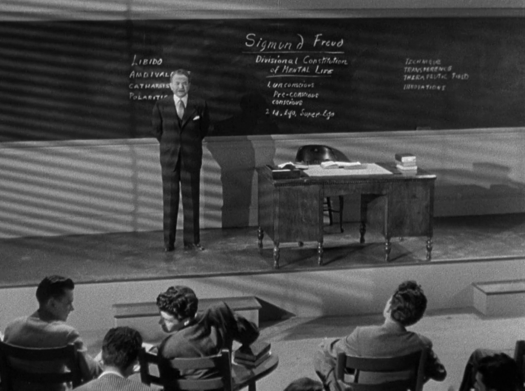 La lógica de una para el sistema, una para mí no es tan simple como parece. Por un lado, porque ninguna obra es pura: hay sistema en la realización personal y realización personal en el sistema. Por el otro, porque hay casos en los que la película realmente buena es la que en principio es menos propia, y casos en los que una y otra son igual de valiosas, y guardan una notable coherencia. Es lo que sucede con La mujer de cuadro y Scarlet Street, cuya unidad está señalada por el elenco (Esdward Robinson, Joan Bennet, Dan Dyurea), por el género alrededor del cual se mueven (el cine negro), por el fotógrafo (Milton Krasner) y por el concepto que reúne sus historias (las películas pueden verse como un díptico sobre la derrota existencial del cuarentón). En La mujer del cuadro, que Lang filmó con bastante independencia, un tipo con esposa y dos hijos, prestigioso profesor universitario, cómodo con su vida y un poco aburrido, vive en sueños la aventura que en la vigilia no solo no se anima a vivir sino que ni siquiera se anima a desear. Es una aventura criminal, no sexual, a pesar de que una mujer joven está involucrada y de que el libro que lee justo antes de conocerla es El cantar de los cantares. Ya lo dice él mismo al comienzo, en la Universidad de Gotham, frente a un pizarrón gobernado por la palabra Freud: “El mandamiento de la Biblia, ‘No matarás’, debe ser reconsiderado a la luz del creciente conocimiento de los impulsos que llevan al homicidio”.