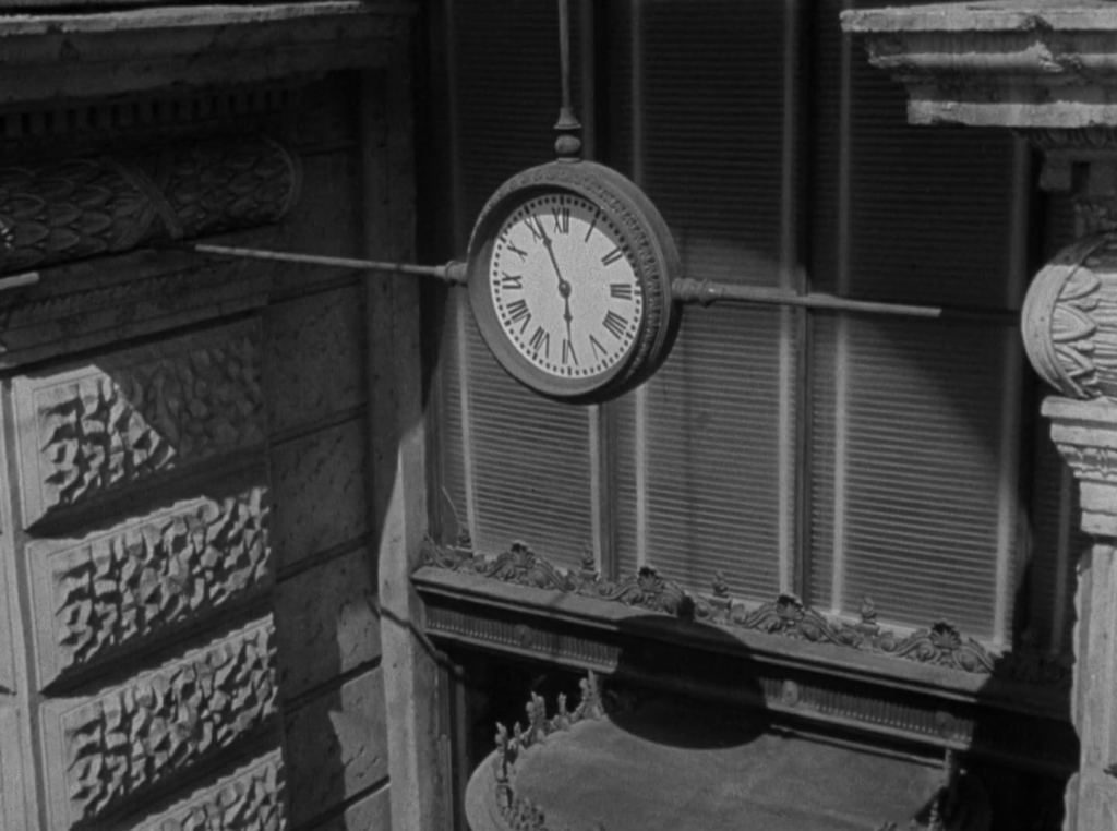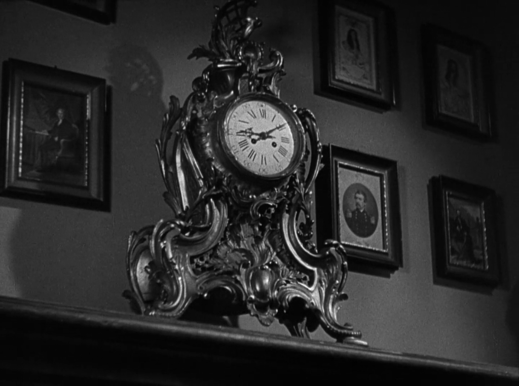 En La mujer del cuadro, Lang filma con cierta distancia todo lo que ocurre. Incluso los momentos en los que el profesor está en riesgo no apuestan decididamente al suspenso. Es fácil decirlo cuando la historia es ya conocida, pero Lang pone tantos anuncios de que todo es un sueño que cuando la revelación se produce no resulta tan shockeante. “Ah, mirá, claro, ya me parecía”, en lugar de “¡Nooo, la puta madre!” Tal vez un detalle contribuya a entender el pliegue risueño de la película. La filmografía de Lang abunda en simetrías, en puertas, manos y relojes. Es sencillo traducir cada insistencia por un concepto: rigor, doblez, manipulación, fatalidad. Pero Lang es demasiado grande como para ser tratado de este modo, como un mero ilustrador de ideas. O si se quiere decir con otras palabras: como un enemigo del plano. De hecho, hace bromas con lo que en principio son serias convicciones, tal como muestran El testamento del Dr. Mabuse, que traza la línea divisoria de un plano con un sorbete, justo entre las tetas de una mujer, y La mujer del cuadro, que pone en abismo la costumbre del reloj. Son juegos con la evidencia y el detalle que la señala y parodia. Por supuesto, todos los planos de y con relojes de La mujer del cuadro están bien integrados en el argumento y en el escenario; al fin y al cabo el tiempo apremia y hay que planificar bien cada segundo. Pero su insistencia es tan alta que termina por comunicarse a sí misma. Hay relojes en el club en el que cena Robinson, en la calle en la que vive Joan Bennet y en el living de su departamento, lo que le permite a Lang filmar una y otra vez la hora. Hay dos objetos que señalan identidades: una lapicera y un reloj. Y hay también un chiste: cuando el personaje interpretado por Dan Durya (ese chacal) mueve los libros de un estante, deja a la vista uno de Vita Sackville-West que se llama 30 relojes marcan la hora.