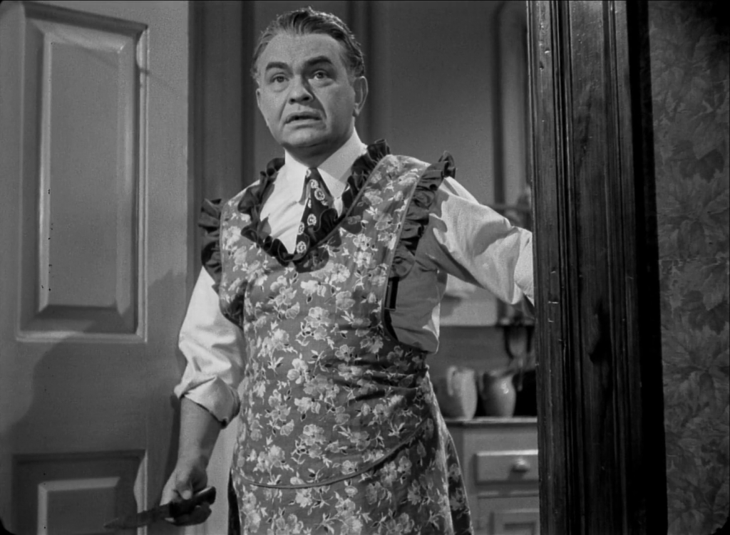 En Scarlet Street (en la que, por cierto, Robinson recibe un reloj como reconocimiento por sus veinticinco años de fidelidad en el trabajo) el hundimiento del empleado se carga de a poco de un aura de inevitabilidad. La mujer del cuadro ofrece la imagen de un hombre tímido pero viril, capaz de asumir el liderazgo en una situación límite y guiar a la mujer. Scarlet Street es su contracara. Robisnon no es un exitoso profesional sino un pobre tipo sometido a su empleo y a su esposa, que lo obliga a vivir en un departamento gobernado por el retrato de su primer marido (un sargento de policía), lo hace cocinar y lavar los platos y lo amenaza con tirarle los cuadros si no se comporta como ella quiere. La imagen de Robinson con delantal se inscribe en una serie que tiene antes al mayordomo de William Powell en My Man Godfrey y después por lo menos tres ejemplos notables: el igual de patético del padre de James Dean en Rebelde sin causa, el no tan gravoso de Fred McMurray en Siempre habrá un mañana y el rosa VistaVision de Bogart en No somos ángeles. Para escapar de la vida que le pone el delantal incluso un domingo en el que recibe la visita de un colega, Robinson se somete a otra mujer, que lo esquilma y lo degrada aún más.