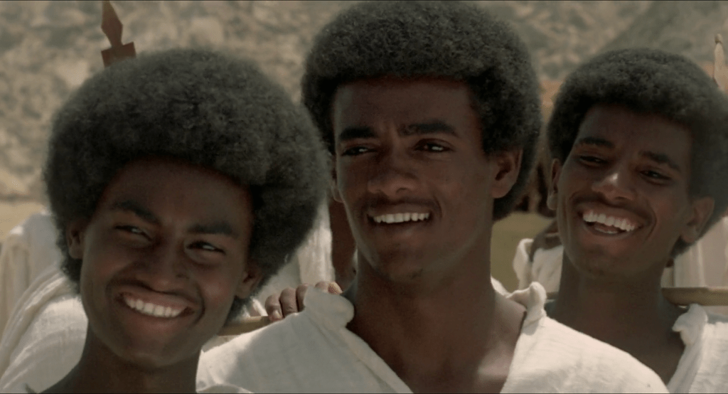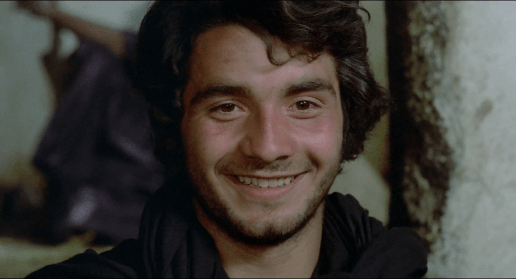 El momento más afirmativo es obviamente la trilogía de la vida. El último plano de Los cuentos de Canterbury muestra la despedida de Chaucer-Pasolini: “Aquí terminan los cuentos de Canterbury, contados por el solo placer de contar”. Es cierto que al comienzo un hombre tatuado dice: “También entre bromas y groserías se pueden decir grandes verdades”. Pero en ningún otro lado Pasolini se permitió ser tan libre y tan gratuito, filmar tan porque sí. Como siempre, pero antes que nada como en El evangelio según Mateo, Pasolini elabora en la trilogía un mural de primeros planos.