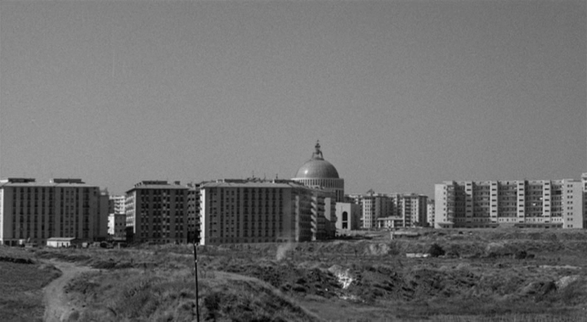 Pasolini aprovecha de manera magistral el barrio en vías de desarrollo, que le permite a la vez el descampado y la ciudad de fondo, como intermedio entre el mundo del que Mamma Roma reniega y el mundo que persigue. El escenario no es un barrio cualquiera sino el Tuscolano II, uno de los proyectos que el gobierno italiano puso en funcionamiento para enfrentar el problema de la vivienda, o para mantener controlados a los pobres, o para eliminar la cultura subproletaria, según quién lo describa. La casa a la que Mamma Roma lleva a su hijo es por lo tanto la casa de un plan estatal. No es un dato secundario, como lo prueba una de las más hermosas escenas de todo el cine de Pasolini.