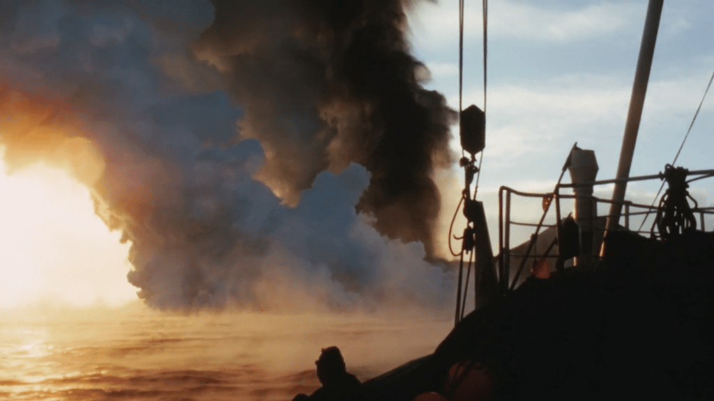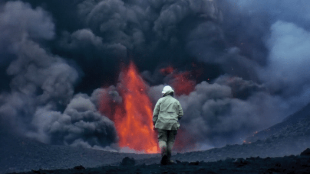 Es gracias a este objetivo que la película se permite entregarse plenamente a la potencia plástica de la imagen cinematográfica. Por supuesto, esto no es nada nuevo en el cine de Herzog, un director al que lo primero (y tal vez lo único) que parece importarle es la búsqueda de imágenes nuevas. Pero, incluso si sus películas estuvieron siempre plagadas de momentos en los que la potencia del plano interrumpía de forma transversal cualquier discurrir lineal que pudiera empujarnos hacia adelante (sea una historia ficcional o documental), en The fire within la película abandona conscientemente cualquier excusa que pudiera llevarnos fuera de esos planos y la voz del propio Herzog (tal vez, su creación mayor) potencia esa potencia al anunciar que va a entregarnos a unas imágenes que no pueden compararse con ninguna otra cosa. El placer, el sentido y la justificación de The fire within son esas imágenes.