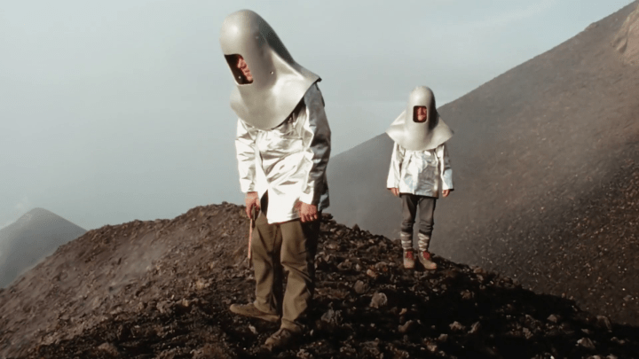 Hay un detalle en esa historia que me parece particularmente significativo y tiene que ver con la relación entre el cine y lo falso. Las primeras imágenes capturadas por el matrimonio (en rigor, son imágenes tomadas por un camarógrafo que trabajaba con ellos y los tomaba de sujetos) tienden hacia lo banal: unos burros, una chica en bikini, una salchicha italiana. También, unos experimentos científicos. El cambio se produce por un lado cuando el propio Maurice Krafft toma la cámara y, por otro, cuando ese registro empieza a dejar de lado sus pretensiones de objetividad y cientificismo y comienzan a buscar la potencia de la imagen en sí. El cambio se da de a poco pero se relaciona también con una serie de gestos que el propio Herzog se encarga de subrayar: los Krafft empiezan a montar escenas falsas para la cámara. Pasa algo, no quedó bien encuadrado, y lo repiten. Lo repiten. Lo repiten. Herzog muestra cada una de las tomas. Nace la mentira. Por otro lado, los Krafft empiezan a construirse como personajes pintorescos: Maurice empieza a vestirse a lo Cousteau, por ejemplo. En un momento, Herzog muestra un intento de probar una especie de casco salido de una película de ciencia ficción clase B, que supuestamente el matrimonio habría desarrollado para protegerse de las piedras que lanzarían los volcanes a los que se acercan. Herzog mismo remarca: “Ningún vulcanólogo serio se puso jamás un casco así” y se dedica a mostrar al matrimonio y sus supuestas pruebas para testear su nuevo invento. Una y otra vez. Como para que quede claro: los Krafft se acercan al ridículo. Por si quedaba alguna duda, incluye en el montaje una estampita de Cousteau e inmediatamente a los Krafft disfrazados, sentados sobre unos sillones inflables grotescos.