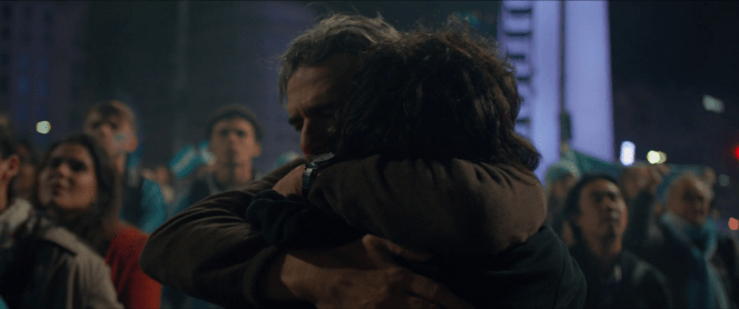La idea de esta paternidad en soltería se sintetiza mejor y en su punto más extremo en Hoy se arregla el mundo: especie de comedia de rematrimonio entre padre e hijo (comedia de repaternidad) en la que el protagonista se ve liberado de su vínculo por lo menos dudoso con su hijo (lleno de parcialidades, inatenciones, momentos compartidos más por formalidad que por afecto) solo para descubrir el verdadero sentido de su paternidad. En El gerente el tema de la paternidad no es el central del argumento, pero sí es central para su resolución: este empleado gris, anticuado y cansado de Noblex al que de pronto se le ocurre una campaña de publicidad con huevos solo va a descubrir lo que significa de verdad jugársela gracias el vínculo (conflictivo, por supuesto) con su hijo adolescente, a quien termina por incorporar a su equipo de trabajo y, gracias a esa convivencia de trabajo, termina por conocer mejor. El clímax de El gerente, exceso hermoso de populismo, se produce en el Obelisco, rodeado de banderas y cotillón argentino, en el momento en el que la Selección clasifica para el mundial de 2018, con un abrazo verdadero, largo, sincero y emotivo con su hijo. Para sumar a la línea de comedia de repaternidad: justo antes de ese gran clímax de gran presupuesto, encontramos una secuencia muy claramente codificada: hubo una pelea/desencuentro entre los amantes (padre/hijo), hay angustia y melancolía, escenas de montaje paralelo y meditativo en las que los vemos mirando hacia el horizonte (o a pantallas de celulares o la pantalla de televisión por la cual están transmitiendo el partido decisivo), una epifanía que surge de ese dolor, un descubrimiento de vida y el momento (también en montaje paralelo) en el que ambos corren hacia el encuentro del otro, en este caso en el Obelisco.