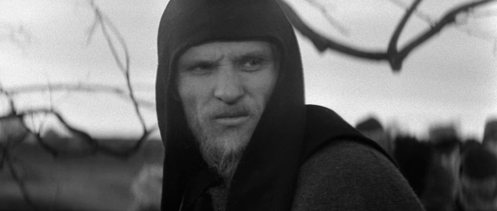 De los dos Andrei de Andrei Rublev el cineasta lo sabe desde el principio. El pintor lo entiende al final. Esta es, de hecho, la historia que cuenta la película entre las conexiones no siempre obvias de sus episodios: cómo después de dudas y tropiezos el artista asume por fin la misión que lo reclama. Hay dos momentos fundamentales (y rimados) en este camino difícil. Uno tiene como protagonista a un viejo maestro. El otro a un muchacho inexperto. El primero sucede en una iglesia destruida y llena de cadáveres. En unos segundos sublimes, Andreí le pregunta a Teófanes el Griego (al fantasma de Teófanes el Griego, muerto ya, a su alma o su memoria): ¿”Cuánto durará este martirio?” Teófanes le contesta: “Tal vez nunca termine”, hace una pausa, mira el ícono que tiene frente a él y exclama con la voz y con la mano: “¡Qué hermoso es!” El segundo es el largo y maravilloso episodio de la campana. Para salir del campo en el que quedó solo después de la muerte de su familia, para asegurarse la subsistencia, un joven dice que, al morir, su padre le pasó el secreto de la fundición de las campanas. Se hace cargo del trabajo, elige el material, coordina las tareas. Cuando el proceso llega a su fin y la campana suena, el muchacho suelta el llanto y confiesa que no conocía el secreto. Que es como si dijera: “Yo no sabia hacerlo”, la frase que todo artista puede pronunciar ante su obra si esta se muestra capaz de vivir por sí misma.