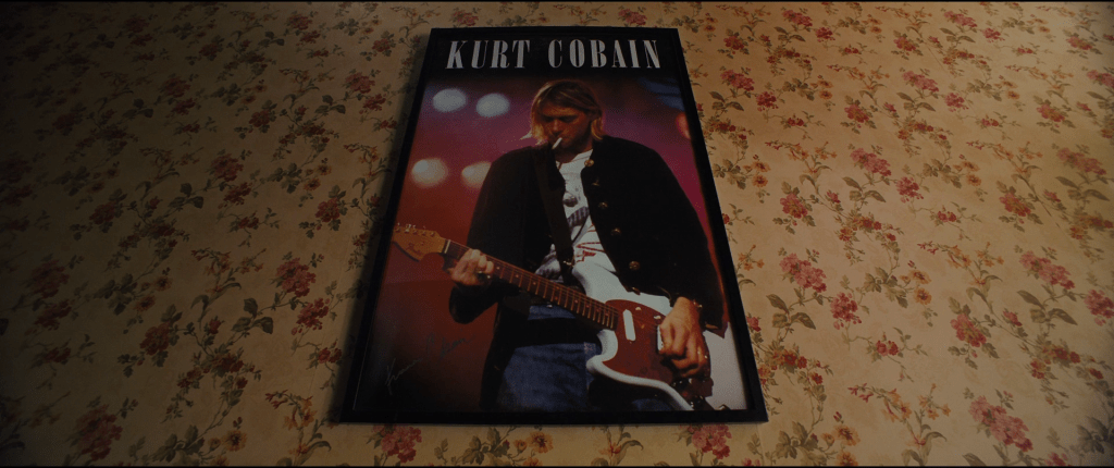 La revista porno, el eslogan de la bisabuela y la película que lega la madre funcionan, además de como objetos del sistema, como testimonios de experiencias que existen en su interior (porque tal vez no haya afuera alguno) pero que no son reducibles a su dinámica y objetivos. Son iluminaciones argumentales equivalentes a las iluminaciones visuales de las dos películas anteriores de Mitchell. (En It Follows, cinco cintas de pasto en la rodilla de una chica, una hormiga en su brazo y el movimiento de los árboles de noche. En The Myth of American Sleepover, una estrella fugaz, el agua del riego, el pie de una piba en la pared del baño y el de otra entre las góndolas del súper). El más grande de los objetos (no solo) del sistema que presenta Under the Silver Lake es el póster de Kurt Cobain que Sam tiene en la pieza. Es el póster el que le pide, de alguna manera, que defienda su sensibilidad ante el viejo, que la reclame como propia, que no acepte que es el mero efecto de un laboratorio. Una cosa es la autoconciencia pop: la de Zappa en Estamos en esto por el dinero, la de Charly en “Dos cero uno (transas)”, la del Indio en “Rock para los dientes”, la de Verhoeven en Robocop, la del Godard que habla en Masculino, femenino de “Los hijos de Marx y la Coca Cola”. Otra cosa es la reconciliación. Así como el viejo expresa los límites del pop desde el punto de vista de la producción de mercancías, Sam los expresa desde el punto de vista de su recepción. Para el viejo, todo lo que toca es equivalente. Para Sam, lo que escucha no puede serlo, porque se niega a aceptar que su sensibilidad esté enteramente contenida en la palabra consumo. Uno dice el precio. El otro disputa el valor. En el final de la escena, Sam mata al viejo con la guitarra que identifica como de Kurco. Es decir, con aquello que se supone es solo parte del negocio pero que las manos de un fan pueden dotar de objetivos nuevos. La guitarra misma lo dice, ya que Cobain intervino la Fender para conseguir un sonido propio. Después, claro, Fender recuperó esas modificaciones y produjo en serie guitarras modelo Cobain. Pero eso habla del poder reterritorializador del mercado, que todos conocemos bien, no de la imposibilidad de convertir lo que no deja de ser una mercancía en parte de un proyecto no seriado.