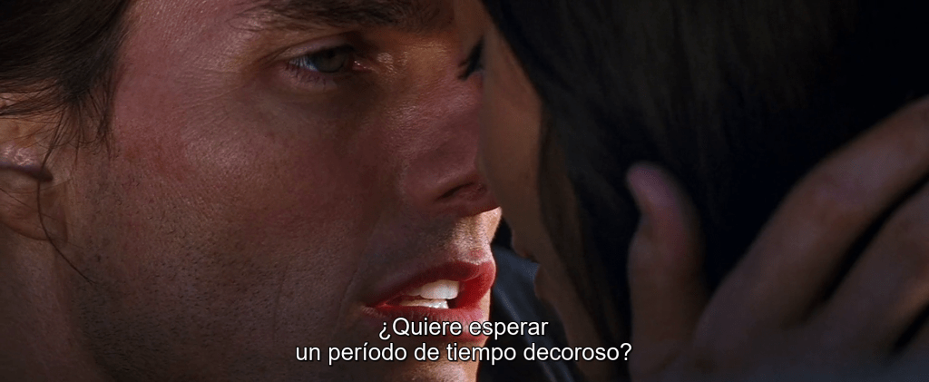 Del otro lado del telón de las Misión imposible, ahí donde se ponen a prueba las fuerzas que sostienen la vida tal como la conocemos o creemos conocer, hay un estado de guerra permanente, una crisis que exige ser incesantemente desactivada y cuya puesta en escena, si bien no desconoce sótanos y cárceles, se juega en un mundo entendido como pasarela: los planos que presentan los lugares en los que las cosas suceden los monumentalizan, y todo se llena de mujeres y hombres hermosos, autos de diseño, palacios, lujo, sofisticación y ropa de marca. (En la segunda parte Ving Rhames se queja porque pisa mierda con zapatos Gucci y porque un disparo le estropea una campera Versace). Frente a todo esto, que no ofrece asideros de ningún tipo, y ante la imposibilidad de una vida como las otras, cuyo brillo humilde e inalcanzable le da a Ethan un drama de plastilina, lo que queda es la confianza en el grupo chico, única certeza en el mundo de trampas y dobleces en el que los personajes actúan. Los aliados cambian, las misiones cambian, los villanos cambian (pueden ser extremistas, agentes quebrados por el dinero y el poder, un sindicato del crimen nacido del propio sistema de defensa mundial, una inteligencia artificial salida de cauce o los laboratorios, que no dudan en inventar una enfermedad para poder vender después la cura). Lo que permanece es una idea simple y efectiva de la amistad. Y en el centro de todo, claro, Ethan Hunt. Es decir, Tom Cruise. Misión Imposible es su pasaje a la historia. Ya tenía un lugar en ella, por supuesto, porque había hecho (y siguió haciendo) películas de probada memoria y había sonreído (y siguió sonriendo) como solo Tom Cruise puede sonreír: con esa mezcla de póster de habitación adolescente, garbo despinado y publicidad de dentífrico propia de quien en lugar de envidia produce en los testigos de su triunfo una convicción infrecuente: la convicción de que es un ganador merecido. De ahí que la impune cantidad de primeros planos con voluntad de estampa que tiene en la saga no resulte irritante.