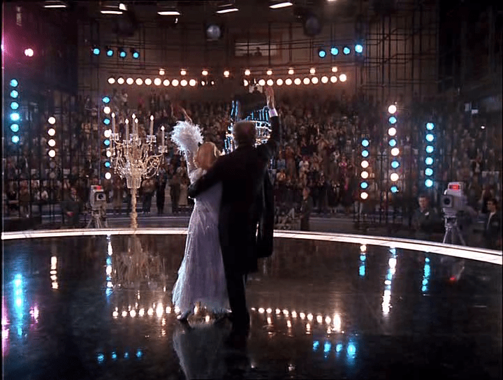 Un panorama como este conduce con facilidad a esta conclusión: nada queda por fuera de la publicidad, la televisión y la basura. Pero incluso en un universo tan ferozmente sometido Fellini encuentra la manera de filmar un momento no sometido. En la secuencia de La dolce vita dedicada a la aparición de la Madonna, después de mostrar rezos ensayados para la televisión, y antes de que los fieles destruyan aquello que alabaron, Fellini filma a una mujer que se acerca al árbol de la virgen para pedir por el hijo que lleva en brazos. Es un instante auténtico en medio de la confusión generalizada. Un instante de fe verdadera que se sustrae a la puesta en escena televisiva y al éxtasis destructivo de la multitud. Bastan estos segundos y algunos gestos de sincera expectación de parte de los presentes (entre ellos Marcello y su novia) para entender que Fellini es contrario al cura que sostiene que es difícil que la virgen haya aparecido donde los niños dicen que apareció, porque “los milagros surgen en la meditación, en el silencio, no en una confusión como esta”. Los milagros de Fellini ocurren en medio del ruido. No se trata de apariciones, resurrecciones, curas o metamorfosis. El milagro en Fellini no es un acontecimiento (ni una fantasía psicológica, claro) sino un espacio repentinamente luminoso que se abre entre el que mira y lo mirado: Geslomina ante la virgen y el equilibrista en La strada (primero ante una, enseguida ante el otro, en una continuidad sacroprofana decisiva en el arte de Fellini), Cabiria ante los jóvenes en el final de Las noches de Cabiria, Marcello ante Sylvia en La dolce vita (con miedo de tocarla, como si pudiera hacerla desaparecer, mientras el sonido de la Fontana se reduce de pronto), Casanova ante la giganta en Casanova, la Gradsca ante el cine en Amarcord. El momento de autenticidad en Ginger y Fred (el milagro felliniano, esta vez en una película que transcurre el 24 de diciembre) tiene lugar en dos escenas perfectamente enlazadas. Una es el número de tip-tap; una cápsula de tiempo en la que los viejos actores vuelven a ser Ginger y Fred. En el medio del leviatán, en el reino de lo falso, de la banalidad y el descarte, ahí mismo, en un escenario de nadie, Fellini construye una catedral: esos minutos que dura el baile y en los que ella brilla y él cae y se repone, porque las iluminaciones de Fellini son iluminaciones heridas, y porque así es todavía mayor un triunfo que la televisión no recordará pero ellos sí, y también nosotros, espectadores de cine7. La otra escena es complementaria al número musical. De hecho, lo interrumpe. Se trata del momento en que la transmisión se corta por un problema técnico y entonces los personajes pueden estar solos y hablar en voz baja, a la vez dentro y fuera del ruido.