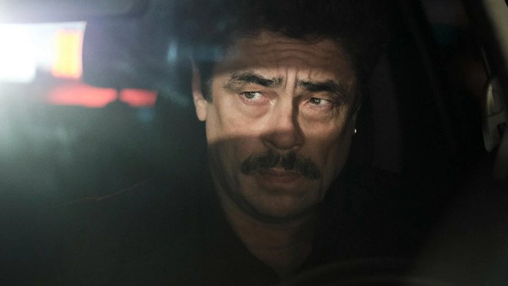Un detalle se me quedó grabado: promediando la segunda mitad, cuando la primera resolución del crimen empieza a quebrarse y Benicio encara una investigación paralela a través de datos nuevos que surgen de formas oscuras, en un momento lo vemos compenetrado frente a su computadora portátil. Primera impresión al pasar: obvio, hoy en día el trabajo de un policía, como cualquier otro trabajo, debe constar en buena parte de sentarse frente a una computadora. Segunda impresión, más duradera: hay un detalle en la mirada de Benicio mientras intenta hurgar las masas de datos para encontrar la explicación escondida. No es simplemente un despliegue de la potencia actoral de Benicio: en uno de los planos, mientras revisa archivos a escondidas y se mueve de un espacio a otro con su computadora, lo vemos revisando la pantalla con los anteojos de leer subidos sobre la frente. Es una imagen fea y precisa: el tipo al que ya la presbicia le está hinchando las pelotas (lo suficiente como para finalmente ir y comprar los anteojos que le recetó el oculista) pero que todavía alcanza a leer sin ellos si se esfuerza. La lucha entre la evidencia de que es más fácil leer con los anteojos puestos (por eso se los puso) y el hábito de valerse de sus propios medios (por eso termina por correrlos y olvidarse de que los tiene). No es un detalle importante y la película de ninguna forma se detiene a señalarlo. Y, sin embargo, ahí está.