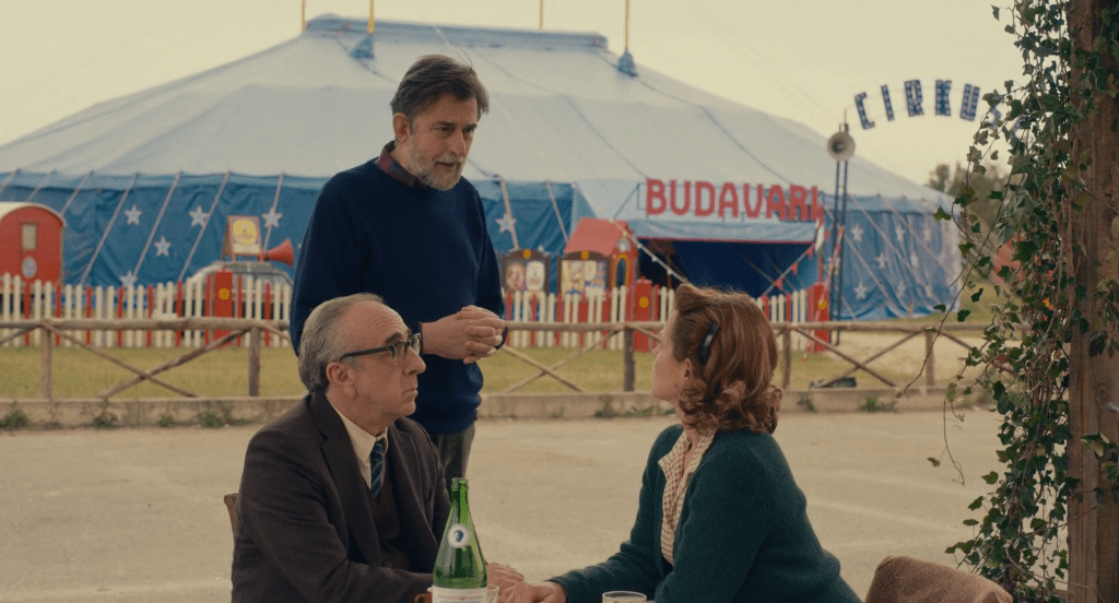 Si desde Aprile, Moretti no había vuelto a desempolvar su viejo personaje apenas-ficcional (ese con el que, en el fondo, todos esperábamos reencontrarnos) y sus juegos del cine adentro del cine, era porque sus películas fueron buscando nuevos rumbos. Dicho esto, por supuesto, en términos muy relativos, porque, por ejemplo, en Bianca (1984) y La messa e finita (1985) ya había ensayado la forma clásica y el tono oscuro, así como en Mia madre (2015) vuelve al director de cine en crisis mientras filma y en Habemus Papam (2011) vuelve a la comedia. Pero, en términos generales, el siglo XXI fue para el cine de Moretti un tiempo de tonos más graves, de formas más lineales, lo que uno podría llamar una época de madurez, si es que eso significara algo. Ahora, el viejo juega a que está de vuelta.