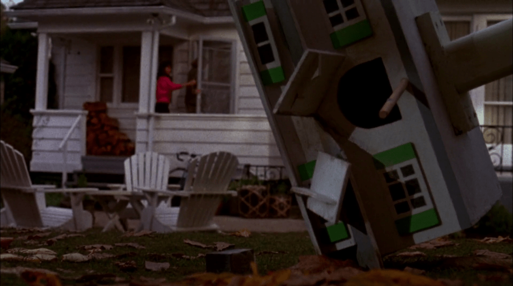 Así es el comienzo de The Stepfather: oscuro y clásico. La historia central comienza un año después, en un pueblo y un otoño similares. El hombre tiene ahora otro nombre (Jerry) y otra familia: una mujer y su hija adolescente con las que intenta diseñar una vida que se ajuste punto por punto al modelo que tiene en la cabeza. El modelo no es orientativo. Es estrictísimo. No acepta fallas ni remiendos. Por eso cuando el plan debe inclinarse ante la contingencia no queda más que romper todo y empezar de nuevo. Jerry es un puro. Un cruzado de la vida pequeñoburguesa. Un psicópata afirmado en la familia, la casa y el sueño americano que él mismo dice promover con su labor inmobiliaria. Cuando, haciéndose pasar por un cliente, el psicólogo de la hijastra le dice que es un soltero convencido y llama «crap» a los hijos, el “hogar dulce hogar” y demás emblemas familiares, Jerry trata de mantener la compostura hasta que un tropiezo del psicólogo le permite matarlo a golpes. No se juega con las cosas intocables. El día que le regala un perro a la chica lo presenta como “algo que toda familia debe tener”. El día que hace una entrevista laboral dice que tiene debilidad por los seguros de familia. En el buzón hogareño puso dos casas como adorno. En su tiempo libre no hace deporte, ni escucha música ni va al cine: fabrica una casita de madera para pájaros.