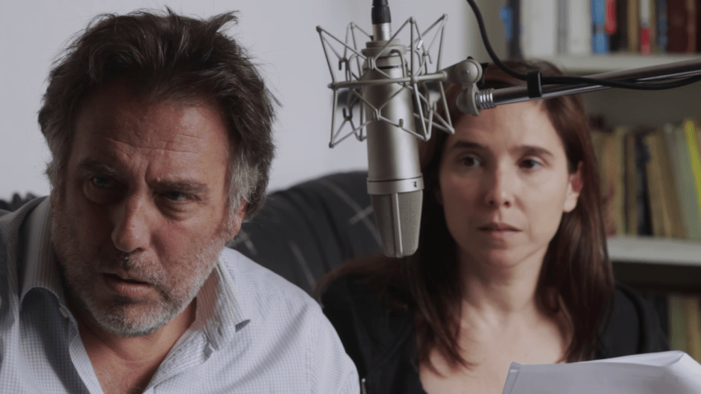 Entre la música y el diálogo sobre la música, Popular tradición de esta tierra se presenta tan entusiasta como culposa: declara en numerosas ocasiones que “Cobardía” es una canción admirable pero sus responsables, en tanto hombres, se obligan a pagar el derecho a esa admiración ante una mujer convocada para señalar el sexismo de la letra y para quien no hay nada más que eso: ni voz, ni guitarra, ni emoción estética. Es un modo de incluir sin incluir (después de la apertura no se vuelve a hablar del tema) que Llinás extiende al presente político del país cuando dice, apenas un par de minutos después, que el gobierno le declaró la guerra al cine argentino y presenta una discusión en la que Gabriel Chwojnik se niega a que en la película se hable de un presidente democráticamente elegido -cualquiera sea, aclara: Cristina o Milei- con palabras que no respeten su investidura. Llinás aprovecha y las dice: tirano, canalla, miserable, mentiroso, mediocre, bruto, mamarracho. Así, la película paga con la discusión un tributo referencial y continúa su camino. Más adelante, cada tanto, recuerda que no va hablar de aquello de lo que por un instante habla. En un juego histérico, se liga y se desliga. La situación crítica del cine argentino está y no está. “Después de largas e intensas discusiones se decidió que este film no habría de referirse a eso”, se escucha en off, al menos tres veces.