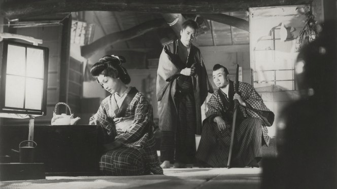 Después de ver las tres películas de Yamanaka que nos quedan (filmografía fácil de cubrir) resulta muy tentador intentar encontrar vínculos y paralelos entre ellas: no solo porque es lo que la crítica nos tiene acostumbrados a hacer, sino sobre todo porque esa frecuentación de las películas, los contrastes pero también las similitudes, permiten ver con más claridad la originalidad de la propuesta de Yamanaka. Vamos primero con lo más evidente: las tres películas (una de cada año antes de su muerte: 1935, 1936 y 1937) corresponden al género que en Japón se denomina jidaigeki, es decir, películas de época, fundamentalmente la época anterior a la restauración Meiji de 1868. En términos gruesos: películas de samuráis. Según la Internet, Yamanaka fue uno de las figuras claves en el desarrollo del jidaigeki como género y toda su filmografía se desarrollaba dentro de este género.