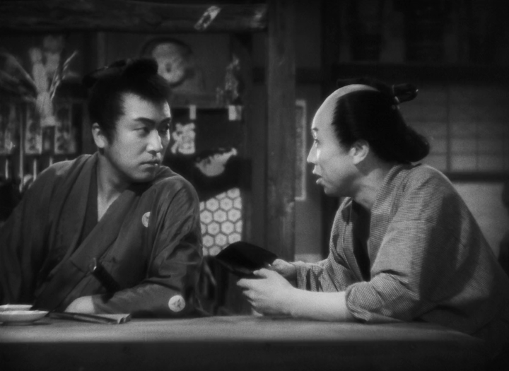Cuando vi The Million Ryo Pot no terminé de entenderlo cabalmente, pero al ver las otras dos ese aspecto fundamental salta a la vista: el cine de Sadao Yamanaka es un cine sin centro. No hay un protagonista, no hay una sola historia, tampoco hay un único punto de vista. Las escenas saltan y entremezclan ambientes, personajes. En ese contexto, también se entiende con más coherencia la naturalidad con la que Yamanaka pasa de registros de un instante a otro: los pasos de comedia se pegan con grandes dramas, se cruzan con intrigas farsescas, se enhebran con lecturas sociales, todo atravesado por un uso muy potente (y bastante solapado) de la belleza del encuadre. No recuerdo otro director capaz de un cine tan sin centro, a excepción de Alexei German, pero ahí donde el ruso es experimental y desorbitado, Yamanaka se mueve siempre dentro de los parámetros de un clasicismo pulido: sus guiones son perfectos y todo calza con naturalidad.