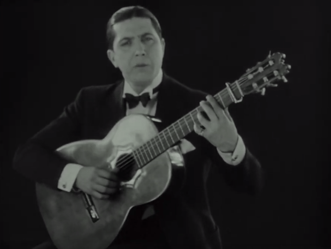 Uno solo de los cortos se propone desplegar un poco de esa ficción: se trata de “Viejo smoking”, donde vemos una escenografía, personajes, entradas en escena, diálogos. Los encuadres son rústicos, los diálogos son explicativos y la acción es nula, pero sirven para explicar el estado en el que se encuentra el personaje cuando su amigo le sugiere que empeñe su smoking para poder saldar alguna de sus deudas y él le tiene que hacer entender todo lo que significa ese viejo smoking. Es en este rincón donde Así cantaba Carlos Gardel se parece al cine que vendría después: de pronto la cámara puede olvidarse del escenario, del proscenio y las butacas y puede, cuando llega el momento, saltar a un primer plano de Gardel para que, ya sin guitarra, pueda entregarse al canto. Pero la ficción todavía no es una construcción tan meticulosa y Gardel se permite, una vez más, mirarnos a los ojos.