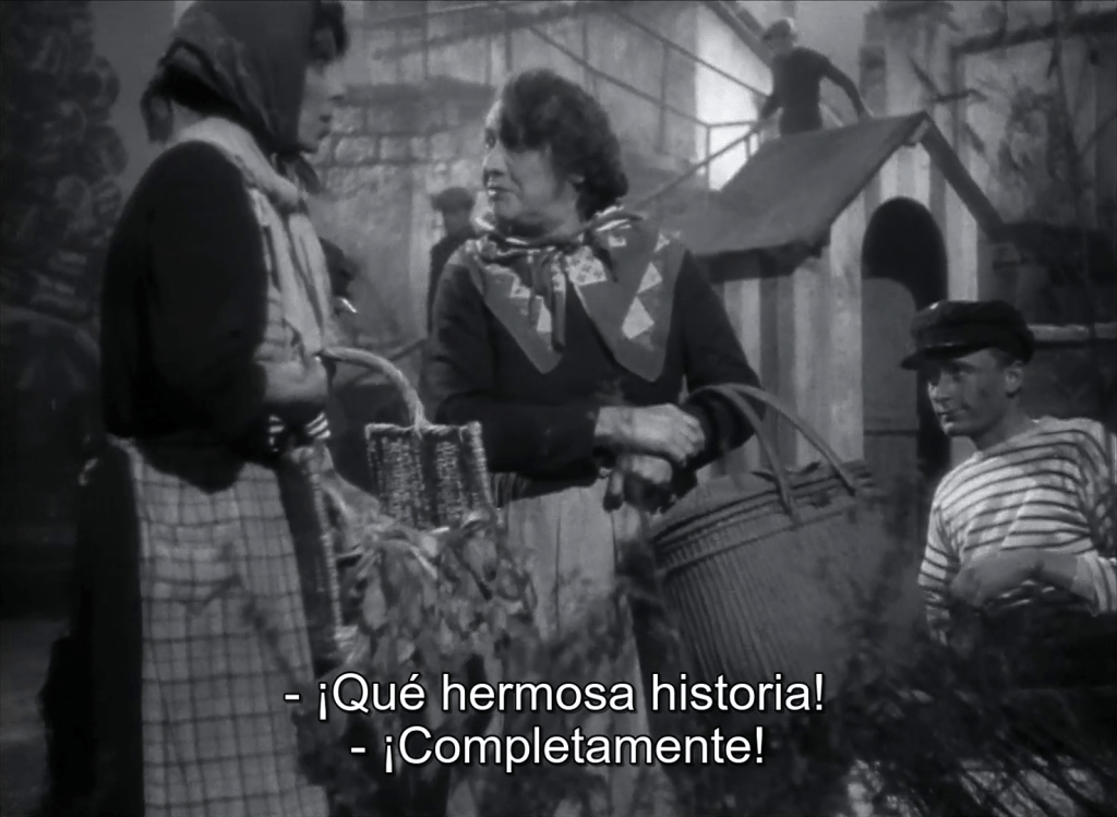 El barco está dañado, la mujer ciega, en ambos late un corazón que se resiste a morir. Francia está en crisis pero viva. Francia necesita ayuda. Un capitán, un esposo. Madere, claro. Madere-Pétain. Así progresó el demonio alegórico, orgulloso de sí como quien arma un rompecabezas y se complace viendo el progreso de la imagen. Es un demonio representativo, al fin y al cabo. Pero apenas establecida, la correspondencia mostró sus ripios y agitó la búsqueda de soluciones. Un hombre como Madere, cuya expresión brilla cuando se sabe amado pero se vuelve amenazante cuando pierde la certeza, ese hombre inseguro, enfermizamente celoso, que no sabe tratar con sentimientos elevados, ¿puede realmente ser el salvador de Francia? No, claro que no. ¿Será entonces el pueblo portuario, que es generoso y por eso sabe amar? Tampoco, porque si bien el pueblo ayuda con su esfuerzo, no lo hace con su inteligencia, y necesita por lo tanto alguien que lo guíe. Quedaba solo un personaje capaz de salvar a Francia y a la alegoría: Ulysse, el comediante, el segundo de Madere, que ensaya sus números durante toda la película y no consigue más que burlas; el hombre que estropea incluso el éxito, según dice el dueño de la taberna. Ese hombre torpe, en quien nadie confiaría, es el que escribe la obra para salvar a Clarisse. Una obra en la que todos tienen su parte y él dirige con mano ligera, al punto que Madere la empuja más allá del horizonte previsto.