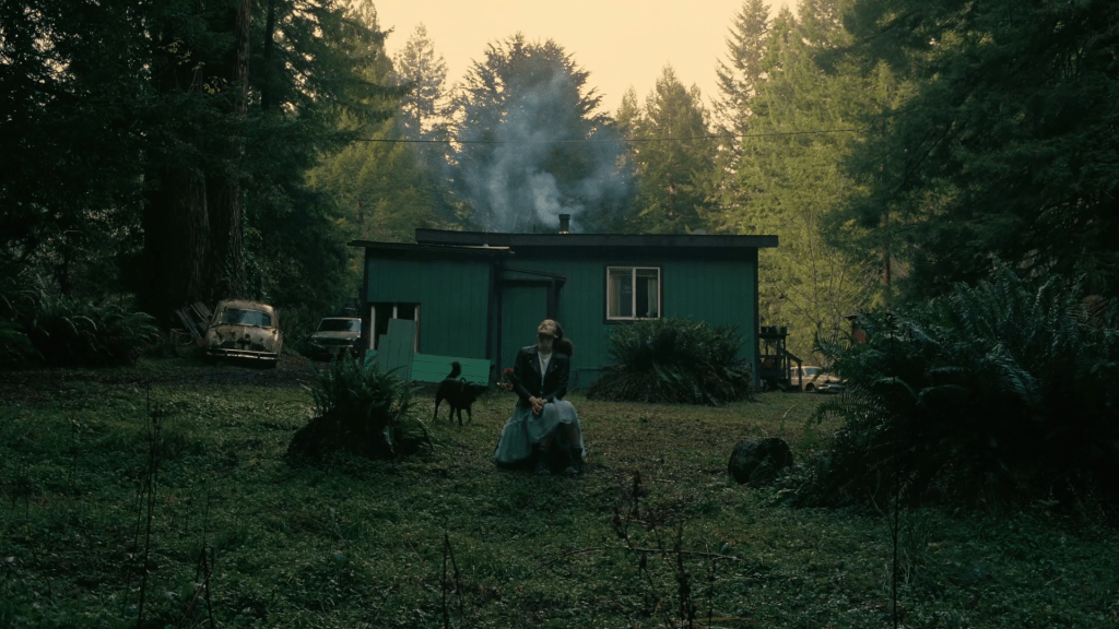 Recién entonces la película empieza a ordenarse retrospectivamente, como si el final incómodo obligara a releer las primeras imágenes. Una batalla tras otra abre con Perfidia Beverly Hills caminando de frente, en primer plano y acompañada por un piano que más que épica anuncia dominio. Después la vemos de espaldas, cuerpo entero, mientras avanza por una autopista elevada desde la que divisa un centro de detención de inmigrantes. Perfidia observa desde lo alto con soberbia y desfila entre los detenidos y los camiones. La política y la acción revolucionaria aparecen como paisaje y como excusa estetizada, lejana, subordinada a la puesta en escena del poder. La música se intensifica y seguirá funcionando como hilo melancólico que organiza la secuencia entera.