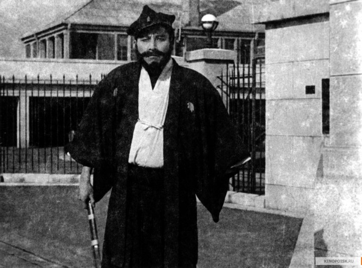 Después de la pelea, Okajima recibe una invitación para sumarse a la fiesta de cumpleaños de la hermana de uno de sus amigos. Caminando por la calle en ropa estrictamente tradicional, y con calzado de madera, es testigo de un intento de robo en una esquina: una modesta chica de kimono se ve forzada a entregar la plata que tiene cuando una mujer moderna, después de pedirle plata porque perdió su billetera, saca un cuchillo y la amenaza. Okajima las ve, se para junto a la ladrona y solo con su mirada seria y su barba, detiene cualquier intento de robo. La escena, estrictamente funcional a todo el argumento que se tejerá a partir de este momento (la salvada es la dama del título, será el amor virtuoso del protagonista; la mujer moderna torcida volverá a aparecer, intentará tentar la moral de Okajima y acabará por aprender las virtudes de la virtud), sirve otra vez para espiar y recorrer esa ciudad de Tokio antes de la guerra: edificios importantes de varios pisos y entradas occidentales, canto a canto con baldíos y espacios sin ocupar, algo que visto desde el presente resulta casi surrealista. De alguna forma, también, esos cuerpos ocupando la calle, el espacio real, se vuelven también un poco más reales: el perfil de Okajima resulta un poco más incongruente caminando por esas calles, no solo enunciado como un personaje ridículo y anticuado, sino perceptiblemente fuera de lugar en esa modernidad. Es también el escenario para su último despliegue físico: frustrado el robo, la mujer de mala vida convoca a sus secuaces, que rodean a Okajima para asegurarnos de que no se meta donde no lo llaman: él, con un par de movimientos certeros, los deja heridos y sigue caminando.
