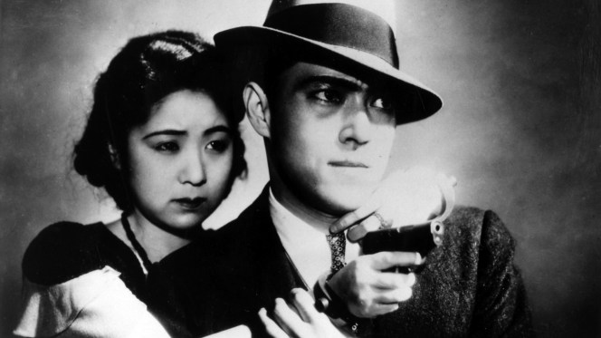 Ozu trabaja también de forma muy consciente el perfil y la construcción de sus personajes a través del impacto de su imagen: cuando filma a Kazuko, con su kimono y su mirada dulce, la filma con el típico plano Ozu: desde abajo y de frente (de paso: ya aparecen planos frontales), con una luz plana que muestra el ser completo. En cambio, Joji es puro vestuario: sombrero con ala doblada sobre sus ojos marcados con rímel, saco cruzado y hombreras que cortan como cuchillo. Cuando Joji está melancólico y desarmado, medio doblado en su antro y sin saber qué hacer, lo vemos sin saco y sin sombrero, con un fleco en la frente que le vuelve blandengue. Lo mismo pasa con Tokiko: cuando está en el trabajo usa un sweatercito a rayas de lo más recatado, pero cuando salen a bailar se calza un vestido blanco de satén y guantes negros hasta las axilas. Y cuando es hora de robar, se envuelve en su sobretodo alado, con solapas que desafían la gravedad y un sombrero que termina de sellar su imagen. Ozu construye también, además de psicologías, personajes iconográficos.