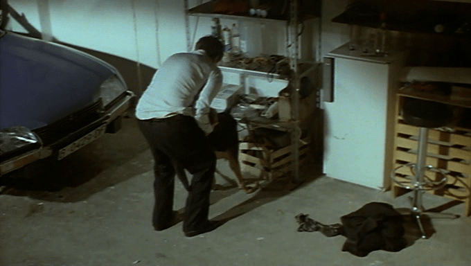 Bigas no abre la historia al contexto: la cierra cada vez más, hasta asfixiarla. En La criatura la burguesía es el monstruo que proyecta el franquismo sin Franco. En Caniche es una enfermedad autoinmune. El cuerpo en el que actúa más activamente es el de Ángel Jové. Cuencas hundidas, movimientos lentos, preocupación por los dientes, extremo cuidado en las acciones menores, el actor ya había ensayado sus gestos y manías en Bilbao. Dice en esta película, a propósito de una mujer que habla más de lo que él quisiera: “sus palabras me sitúan en la realidad que aborrezco”. Contra esa realidad levanta la catedral malsana de una obsesión: fotos clandestinas, la canción en alemán que dice el único nombre que le importa (“Bilbao Song”, por Lotte Enya) y una voz en off insistente y llena de detalles que conforma, al igual que la música de Amargós, el rumiar permanente de un único motivo. En Caniche su derrotero es similar pero el modo de acceder a la mujer que lo obsesiona no es el rapto sino la animalización. En el comienzo, lo vemos ponerse en los pies la pomada del perro. “Si le va bien a Dany, ¿por qué no a mí?”, le dice a la hermana cuando esta lo reconviene. “Porque Dany es un perro y tú no”, le responde ella, y deja establecido ante nosotros el camino que el hombre debe seguir para probar la miel. El ascenso social no lo complace: usa el auto viejo en lugar de los nuevos, se pone celoso de Dany (“Yo también la quiero, pero ella te prefiere a ti”) y del veterinario, no quiere comer cachorro sino la carne de antes, se coge un perro, pierde el habla, mordisquea en cuatro patas los diarios de una cucha, gruñe y conoce finalmente a Eloísa.